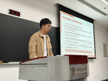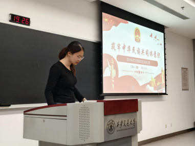在会议的第一阶段,硕5066党支部入党积极分子宋佰霖以《庆祝中华人民共和国成立76周年》为题作专题汇报。他深情回顾了在过去76年里,中国共产党团结带领全国各族人民从站起来富起来的伟大历程,激扬着奋斗豪情,表达了对国家未来发展的无限期许。宋同学结合习近平总书记的重要讲话精神,阐述了中国式现代化的核心要义,并号召大家以实际行动为实现中华民族伟大复兴的中国梦贡献力量。在激动人心的讲解中,宋同学强调,作为新时代的青年,我们要勇担使命,脚踏实地,奋力谱写中国式现代化的绚丽篇章。