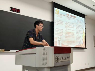 会议的第二阶段,硕5080党支部弓喆同志继续就同一专题进行汇报。他以时间为脉络,从“历史进程、伟大成就、破壁之路”三个维度带领大家回顾了新中国七十六载的光辉历程,重温了中国共产党团结带领全国各族人民实现从站起来、富起来到强起来的伟大飞跃。他重点介绍了我国电力工业的发展历程——从新中国成立初期的“一穷二白”,到如今构建起世界领先的能源体系。他鼓舞支部同志在科研与学习中赓续奋斗精神,为实现中国式现代化贡献青春力量。