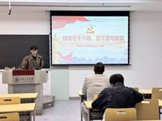 会议第二部分,张景程同志以“辉煌七十六载,谱写奋斗新篇”为题进行汇报。他首先回顾了新中国成立以来的光辉历程与伟大成就,从经济腾飞、科技突破到全面建成小康社会。随后,他强调,取得这些成就的根本在于坚持党的领导和中国特色社会主义道路。最后,他聚焦责任与担当,号召大家将爱国主义、奋斗精神与创新意识融入血脉,在工作中恪尽职守、协同合作、勇于创新,把个人理想融入国家发展的洪流,以实际行动在民族复兴的伟业中挺膺担当。