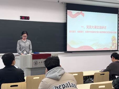 在党员大课交流研讨环节,入党积极分子李鹏宇、张星竹结合自身学习感悟,分享了对党的百年奋斗历程与初心使命的深刻理解。