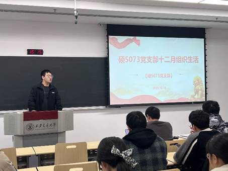 为深入学习贯彻党的创新理论,传承红色基因,强化生态担当,2025年12月18日,硕5073党支部召开十二月组织生活。本次会议以“踏石留印、砥砺前行,实现中华民族伟大复兴”为核心主线,设置党员大课交流研讨、秦岭生态安全专题学习两大环节,支部党员和部分入党积极分子参会,在思想碰撞中凝聚奋进力量,在责任担当中践行初心使命。