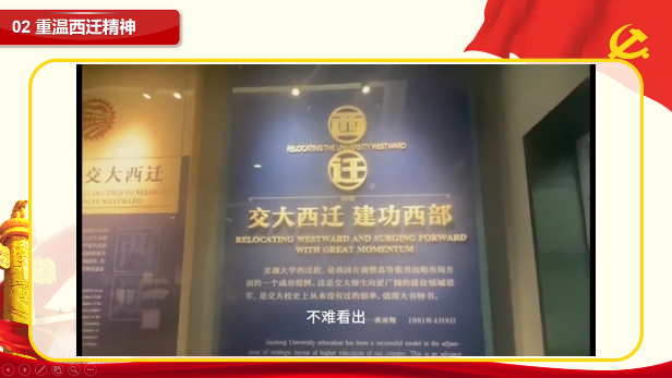 朱政同学认为:“回顾西迁精神,我感受到了展示了无数交大人与西部建设者的不懈奋斗与奉献精神。通过观看了解生动的西迁故事,他们不畏艰难、扎根大西北,展现了为国家和民族发展而做出的牺牲,体现了无私奉献、勇于创新的精神。通过回顾这些感人的经历,我感受到了一种强烈的责任感与使命感,我们应该传承这种精神,积极投身于社会建设,为祖国的繁荣贡献自己的力量。”