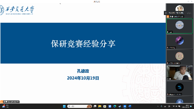 首先,孔德政同学将为我们分享他的保研竞赛经验。在当前竞争激烈的环境中,保研成为了许多同学追求进一步学习的重要途径。孔德政首先向大家介绍了他的保研历程,强调了学术成绩的重要性,特别是每一门课程的分数都至关重要。他还详细解释了如何计算智育分、德育分以及综合成绩。