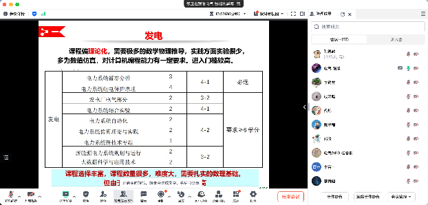 之后,张旭同学将为我们介绍电气专业的小方向,帮助大家更好地了解我们专业的发展前景和未来的学习方向。张旭同学的介绍涵盖了多个关键领域,包括发电、电机、工企、高压、电器以及三电等,每个小方向都进行了详细的阐述。