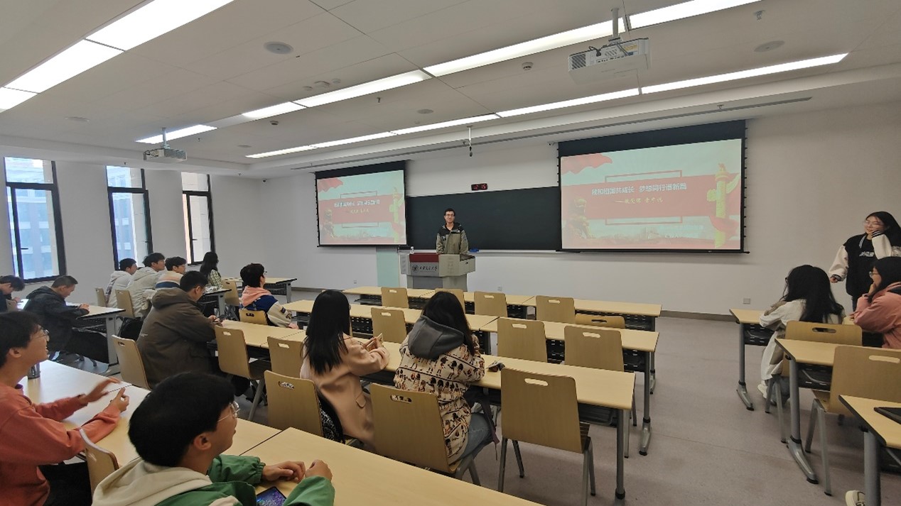 团支部特别策划了“青言青语”微党团课专题宣讲活动,邀请优秀青年党员、团干部及青年榜样,用“青言青语”讲述红色故事,分享成长感悟。他们以贴近青年实际、贴近青年生活的话语,让党的理论知识变得生动鲜活,让每一位参与者都能听得懂、记得住、用得上。闫晗同学以饱满的热情和深刻的理解,向大家分享了一场以西迁精神为主题的精彩汇报。在汇报中,闫晗同学深情讲述了西迁过程中的感人故事和英雄人物。站在新的历史起点上,广大青年要牢记党的嘱托和人民的期望,把个人的理想追求融入到党和人民的事业之中,为实现中华民族伟大复兴的中国梦贡献青春力量。邓可同学进行了以“学习长征精神,做红色传人”为主题的微党课。邓可同学强调了长征精神对于当代青年的重要意义。他说,长征精神不仅是中国共产党和中国人民的宝贵精神财富,更是激励我们不断前进的强大动力。作为新时代的青年,我们应该继承和发扬长征精神,坚定理想信念,勇于担当使命,为实现中华民族伟大复兴的中国梦贡献自己的力量。邓可同学还结合自身的成长经历和感悟,分享了如何在学习和生活中践行长征精神。他鼓励大家要勇于面对困难和挑战,不断锤炼自己的意志品质;要珍惜来之不易的学习机会,努力学习科学文化知识,提高自己的综合素质;要积极参与社会实践和志愿服务活动,为社会贡献自己的力量。冯庆豪同学以生动的语言和真挚的情感,讲述了自己与祖国共同成长的故事。他回顾了自己从小到大的成长历程,从个人梦想的萌芽到逐渐明确的人生目标,都与祖国的发展紧密相连。冯庆豪提到,自己见证了祖国在科技、教育、文化等各个领域的飞速进步,这些成就不仅让国家更加繁荣昌盛,也为自己的成长提供了广阔的舞台和无限的可能。