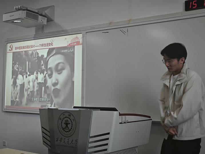 会议第一项内容是陈健翔同志组织支部同志们集中回顾中华人民共和国成立七十五年来重大事件与七十五年来人民日常生活变化珍贵影视资料。第一党小组精心制作的视频带领支部同志如身临其境般重温了1949年开国大典、1971年重返联合国、2001年申奥成功、2017年朱日和阅兵等重要历史时刻真实记录片段,再次回顾了新中国成立以来的累累硕果与老一辈无产阶级革命者为建设新中国付出的艰辛与努力;另一段视频则展现了新中国成立以来75周年普通民众的生活变化,看着祖国一步一步由积贫积弱发展至国富民强,与会同志们无不感慨万千。
