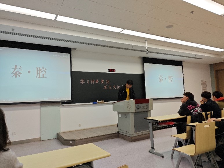 随后,与会成员共同观看了2017年非遗文化纪录片《秦腔》。该纪录片通过生动的画面和真实的故事,展现了秦腔的历史渊源、艺术特征以及其在当代社会中的传承与发展。通过观看此纪录片,同学们不仅增进了对非物质文化遗产的理解,也感受到了秦腔作为一种独特艺术形式所蕴含的文化魅力。观看结束后,同学们对此进行了热烈的讨论,分享各自的感受与见解,促进同学们对秦腔以及其他非遗文化的关注和理解。