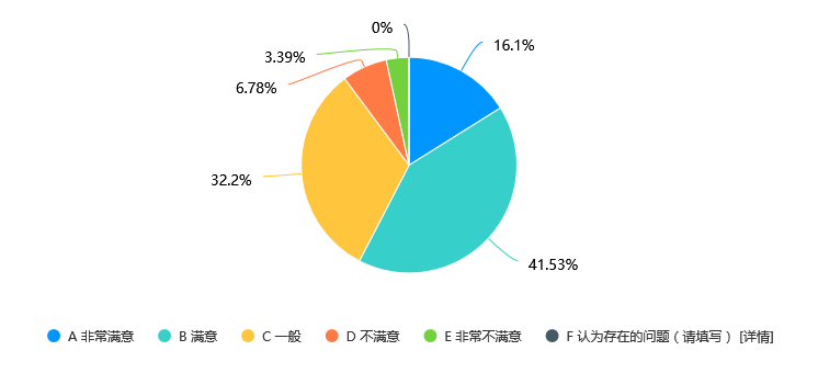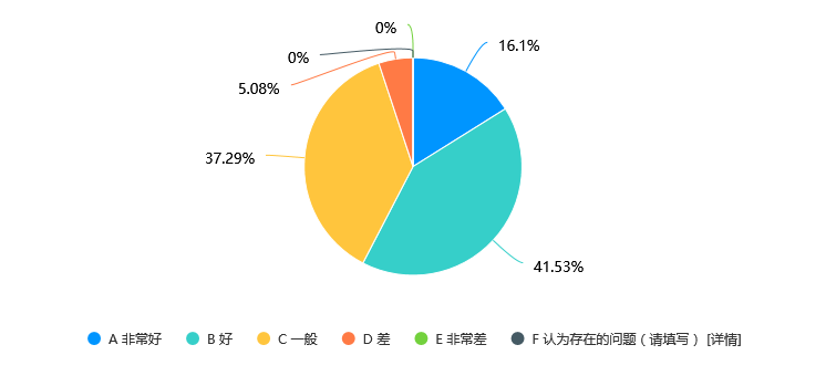 大部分受访者对所在城市的生活满意度表示满意(选择“非常满意”和“满意”),其中“满意”选项占比最高,达到了50%。仅有2.54%的受访者表示不满意,且没有人选择“非常不满意”或认为存在问题。从结果可以看出受访者对城市生活的满意度较高。