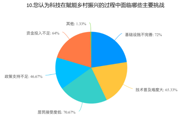 在与多家企业的交流中,我们发现科技应用在提高生产效率、促进经济增长方面取得了显著成果,但许多乡村地区对于科技的接受度相对较低。一方面,部分农民由于缺乏相关的科技知识和技能,无法高效使用新技术。另一方面,一些乡村的基础设施条件尚未能满足高科技设备的运行需求。这引发了我们关于如何促进科技普及、提升乡村居民科技素养的讨论。