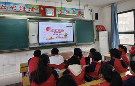 王稀还讲述了杨靖宇、左权、李林等抗战英雄的英勇事迹。英雄们用生命诠释家国大义的精神深深感染了在场的每一位同学。八(15)班学生于灿感慨道:“英雄们的名字值得我们铭记,他们的精神更值得我们传承。作为新时代的青年,我们要以他们为榜样,在学习生活中践行爱国精神。”