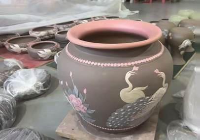 抵达方集镇后,团队成员发现陶艺园区中新建场馆设施与传统作坊龙窑并存,不仅有传统的制陶作坊和龙窑,还新建了许多现代化的展示场馆和体验设施,实现了传统与现代的融合。在古法制陶馆,成员目睹制陶全过程,从拉坯、修坯到烧制,师傅们手法娴熟,在保留传统制陶工艺的同时引入现代化的设备和技术,如电窑和精密温控系统,提高了生产效率,也保证了产品质量的稳定性。在与陶艺师傅交流的过程中,老工匠回忆了上世纪五六十年代方集镇陶瓷产业盛况,以及近年来在政府支持下,年轻人开始学手艺,将现代设计融入传统陶艺,陶艺园重焕生机。陶艺师傅表示:“只有让传统技艺与现代生活接轨,才能让它真正活下去,成员们对此深受启发。