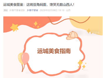 运城是中华文明发祥地之一,美食融合面食文化与地方风味。为深入了解运城美食文化,推动地方文化传播,“乡情守望者”团队借助新媒体和线下活动开展了宣传活动。