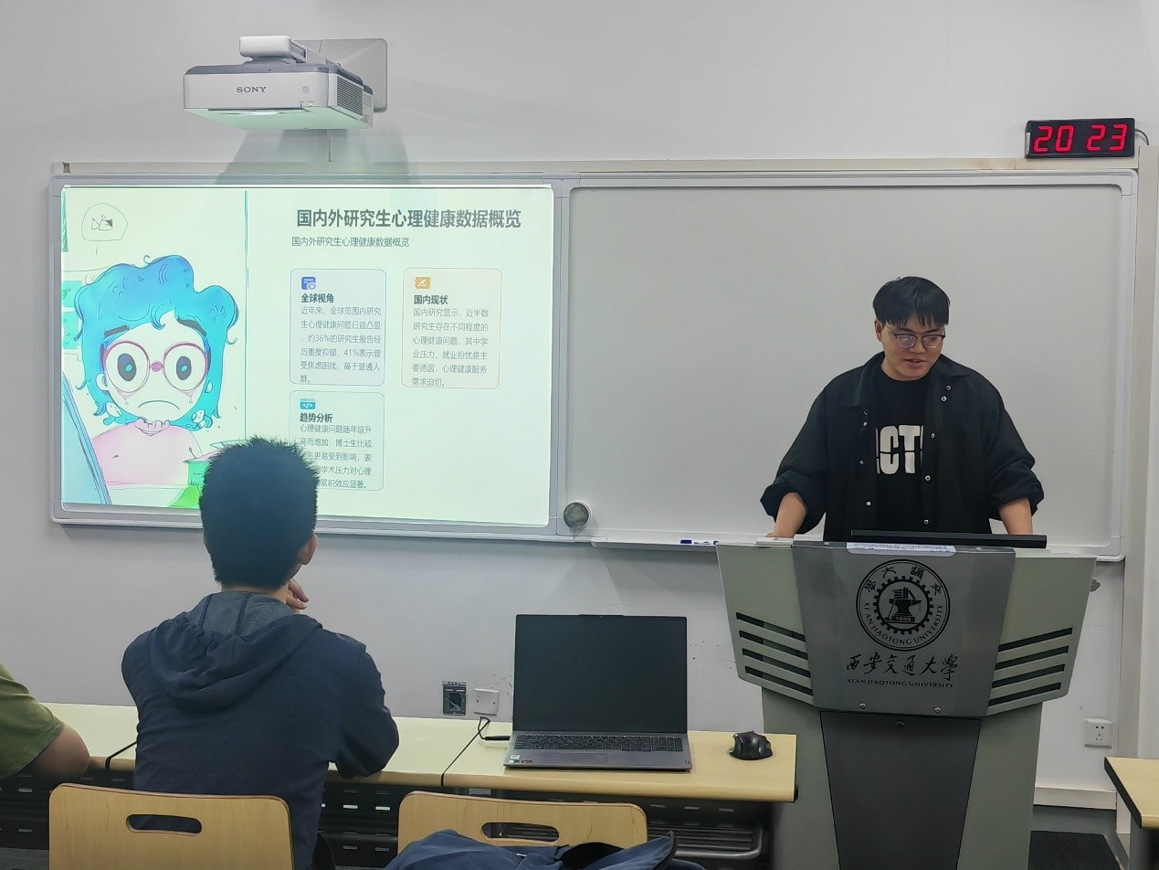 班会伊始,罗嗣朋同学用一组触目惊心的数据引发大家思考:全球约36%的研究生报告经历重度抑郁,41%表示曾受焦虑困扰;国内近半数研究生存在不同程度的心理健康问题;研究生中焦虑症发生率高达30%,抑郁症约为20%,超过半数存在睡眠问题……这些数据背后是每一位研究生可能面临的心理挑战。正如罗嗣朋所说:“良好的心理健康不仅是高学术成就的基础,更是科研创新的源泉,是未来职业发展的基石,更是生活幸福的保障。”