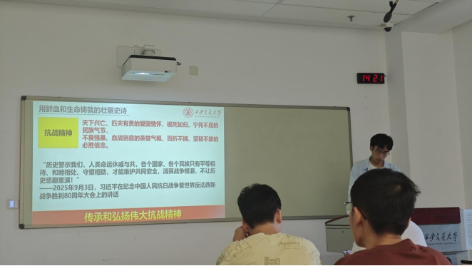 2025年9月16日,硕4080班团支部于5-2091教室,举行“弘扬伟大抗战精神,锤炼本领团结奋斗”主题团日活动,本次活动由刘晓润、公乐腾同学主持。
