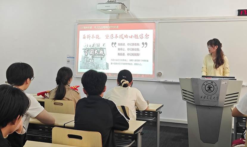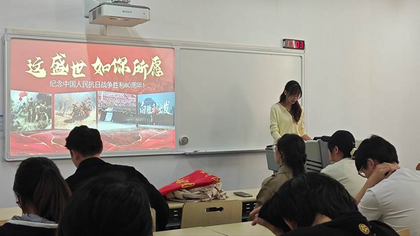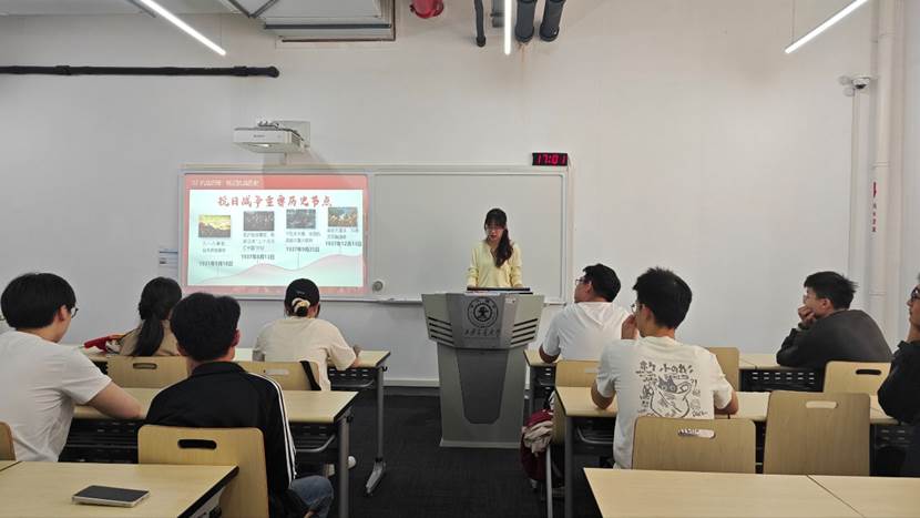 随后,闫佳欢同志带领全体同学梳理了十四年抗战的壮阔历程——从1931年“九一八”事变揭开侵略序幕,到1937年全面抗战爆发后的淞沪会战、平型关大捷、百团大战等关键战役,再到1945年日本宣布无条件投降,一个个历史节点串联起中华民族浴血抗争的艰辛岁月。活动中,同学们围绕电影《南京照相馆》展开热烈讨论,有人提及“邮差阿昌从求生到主动传递日军罪证的转变”,有人想到“侵华日军南京大屠杀遇难同胞纪念馆每日响起的警示钟声”。大家一致认为,这些历史印记不是冰冷的故事,而是“历史不能忘、和平来之不易”的鲜活教材,让每个人深刻体会到侵略战争的残酷,更坚定了捍卫历史真相的决心。