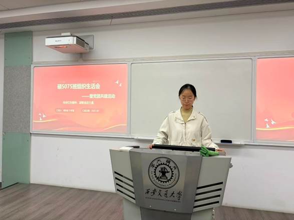 2025年9月25日晚,硕5075班在创新港校区4-3204召开党团支部9月联合组织生活。本次会议由吴柘辰主持,会议以传承红色精神为主线,从纪念抗战胜利80周年传承伟大抗战精神、了解教育工作者事迹领悟教育家精神、学习红色视频厚植爱国主义情怀、明确未来方向等四个方面分别展开。