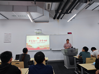 会议最后,黄思同志围绕“根植爱国主义精神”开展专题组织生活。黄思同志首先阐释爱国主义的深刻内涵与时代价值,指出西迁精神正是其在当代的生动写照;随后号召青年党员赓续红色血脉,把爱国情、强国志融入科研报国实践,以青春担当为民族复兴贡献智慧与力量。