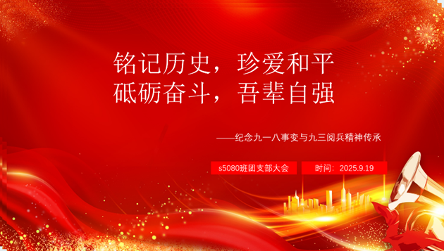 紧随其后的团支部大会以“铭记历史,珍爱和平,砥砺奋斗,吾辈自强——纪念九一八事变与“九三阅兵”精神传承”为主题召开,全班团员齐聚一堂,接受深刻的精神洗礼。在“回顾历史的苦难”环节,黑白影像与详实史料交织,将九一八事变后中华民族的浴血抗争史娓娓道来,“落后就要挨打”的历史教训深深镌刻在每一位团员心中。