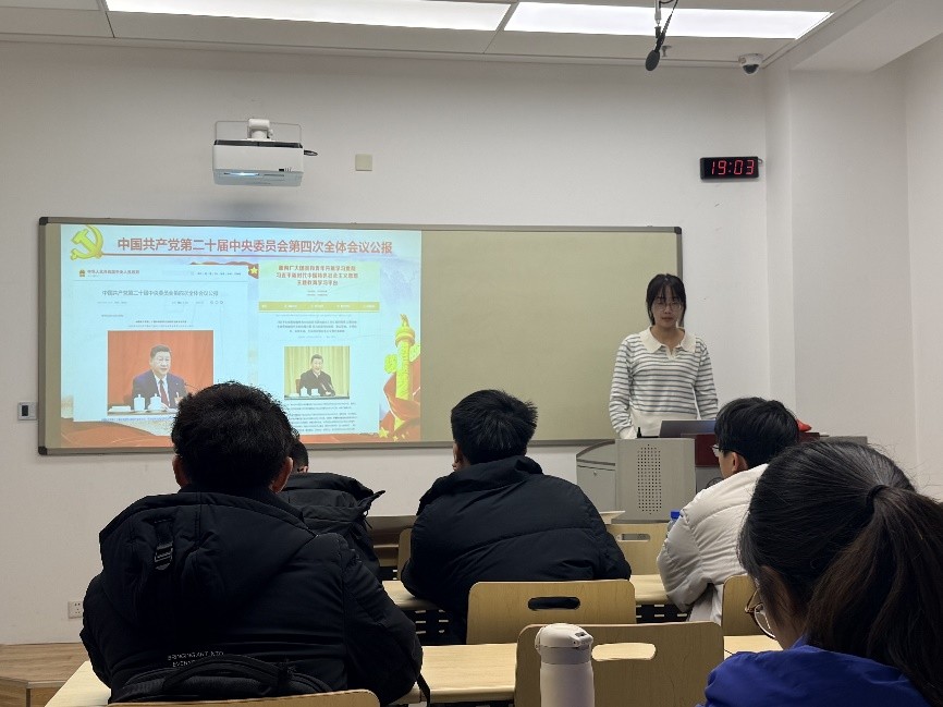 为深入学习贯彻党的二十届四中全会精神,硕5070团支部由团支书组织专题学习,通过集中研读、分组讨论等多种形式,带领、引导团员全面领会全会精神的核心要义与实践要求,增强政治认同和行动自觉。