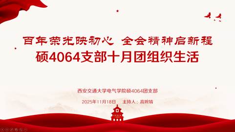 硕4064团支部于11月18日晚举办以“百年荣光映初心,全会精神启新程”为主题的团支部十一月团组织生活。此次会议由高婉婧主持。