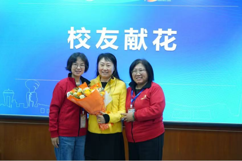 校友们向他们的授业恩师献上鲜花,表达了对老师们辛勤教导的敬意。胡红利教授在发言中感慨时光荏苒,学校和西安都发生了翻天覆地的变化,他期望校友们常回母校看看,感受母校的温暖和变化。