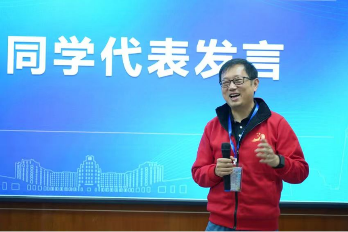 北京航空航天大学教务部部长钱政表达了自己对母校的深厚情感。他提到,由于工作需要,他每年都会多次访问交大进行学术交流,他期待未来能与仪器学院和电气学院开展更深入的合作。钱政还强调了校友之间的紧密联系和团结精神,他自豪地表示,电测90级的校友们已经组织了五次聚会,这充分展现了他们之间深厚的同学情谊。他感慨道:“因为很幸福所以很年轻,祝愿各位老师身体健康,万事顺遂。”