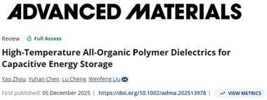 、电工材料电气绝缘全国重点实验室刘文凤教授团队应《先进材料》(Advanced Materials)期刊邀请,发表了题为《用于高温电容储能的全有机聚合物电介质》(High-temperature all-organic polymer dielectrics for capacitive energy storage)的综述论文。该论文系统梳理并评述了全有机聚合物高温储能电介质领域的最新研究进展。