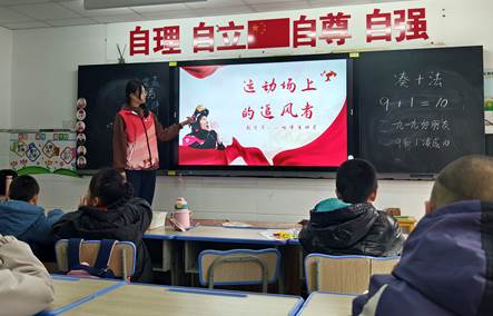 在活动的最后一部分,实践团队为孩子们带来了一场温暖而充满力量的励志分享会。通过图文和视频展示,团队成员分享了邰丽华、史晓慧、赵月月等残障人士克服困难、追逐梦想的感人事迹。这些事例激励孩子们相信自己,勇敢面对生活中的挑战。孩子们深受感动,纷纷用手语表达了自己的感受,并分享了自己的梦想。团队成员与孩子们互动,送上了鼓励和祝福。